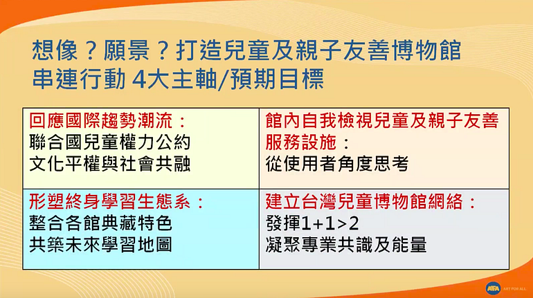 1989年,聯合國提出「兒童權利公約」,臺灣於2014年也提出了「臺灣兒童權利公約實施法」,期望能提升與保障「兒童的文化參與權」,我們不能排除他們,文化參與應是基本人權之一。