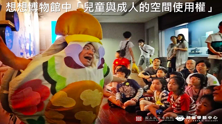 兒童與成人的空間使用權常常是對立的。2015年兒藝中心嘗試將兒童帶到成人展廳看展覽並舉辦活動,當時故宮還有夜間開放時段,為了將風險降到最低,兒藝中心邀請兒童劇團到真品展廳來辦戲劇導覽,演員打扮成國寶文物,和小朋友和家長解說文物故事。